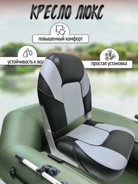 Мягкое кресло на складывающимся каркасе для лодок и катеров. Поворотный механизм в комплектацию не входит. Имеет повышенную комфортность за счет больших объемных подушек, как на сиденье, так и спинке. Форма выполнена с учетом анатомических особенностей тела человека, поэтому даже при длительном сидении мышцы не будут перенапрягаться и уставать. Благодаря стальному каркасу кресло держится стабильно и устойчиво. Стальные трубки защищены от коррозии специальной краской. Складная конструкция каркаса позволяет компактно хранить или перевозить его. Мягкие части обтянуты прочным и износоустойчивым морским винилом в 2-х цветах. Материал устойчив к воздействию ультрафиолета, не впитывает влагу и легко очищается от пыли и грязи при помощи обычной влажной тряпки. Ширина кресла -45см, высота- 60см, глубина 44см