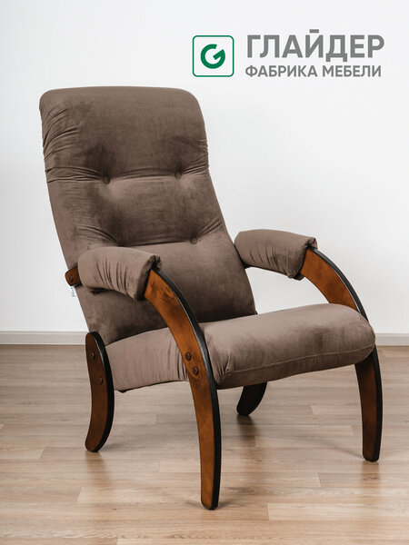 Кресло для дома модель 61 от российской фабрики мебели Glider станет любимой вещью в доме. В каждой квартире должно быть удобное кресло в гостиную. Оно не только удачно дополняет интерьер, но и создает уют. Изделие можно использовать как кресло для отдыха на кухне пока готовятся ваши блюда. Благодаря оптимальным габаритам вы сможете поместить кресло на балкон. и любоваться прекрасным видом из окна. Кресло для отдыха мягкое, имеет эргономичную спинку с комфортным углом наклона. Благодаря этому вы сможете принять удобное положение и сохранить правильную осанку. Кресло для гостиной идеально подойдет пожилым людям, а так же для детей в детскую комнату. Кресло интерьерное имеет каркас выполненый из фанеры натуральной березы, а крепления держатся на винтах. Спинка и сидение кресла для отдыха мягкие, наполнены дышащим наполнителем. Какая бы ни была обивка кресла материал не выгорит на солнце и не начнет скатываться, устойчивой к истиранию и выгоранию, легкая в уходе. Краски и лаки, которыми покрыто деревянное кресло, сертифицированы и гипоаллергенны. Кресло для отдыха дома отлично подойдет для каминной зоны. У компании Glider вы найдете идеальную мебель. Кресло мягкое в гостиную подойдет для подарка. Кресло лофт со спинкой для взрослых используют мамы для кормления ребенка, а папы удобно для отдыха с книгой. Кресло для отдыха велюр можно использовать как офисное кресло или кресло руководителя. Кресло выполнено в ткани DAKOTA - матовый микровелюр отличного качества. Материал устойчив к стиранию (60 тысяч циклов). Ткань проста в уходе.