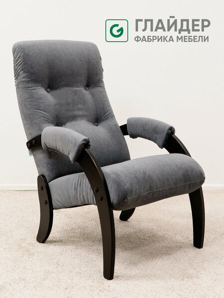 Кресло мягкое для отдыха, дома и дачи Glider 61 с мягкими подлокотниками, цвет серый/черный