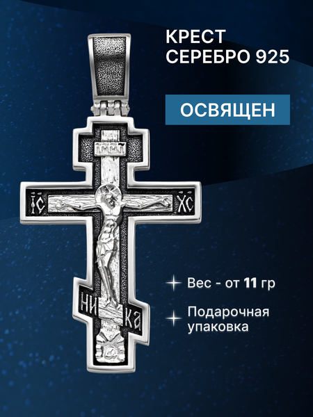 Крест изготовлен из серебра 925 пробы. Покрытие - чернение (оксидирование).