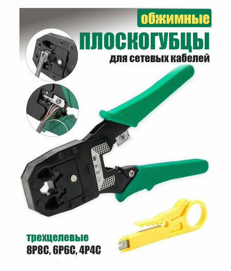 Сетевой обжимной инструмент применяется для резки проводов, зачистки кабеля и обжима кристаллических разъемов RJ45/RJ12/RJ11. - Этот прочный инструмент идеально подходит для разъемов 8P8C, 6P6C, 4P4C, RJ 45, RJ11 и RJ12. - Устье пресс-клещей изготовлено из стали, которая является твердой и прочной. - При использовании обжимного устройства RJ45 просто вставьте верхнюю часть кристалла на место и нажмите на нее. - Он не повреждает провод в оболочке и работает удобно с высокой эффективностью. - Спиральная пружина обеспечивает быстрое самооткрывание. - Этот обжимной инструмент 8P8C с ручками с пластиковым покрытием для обеспечения большего комфорта во время использования