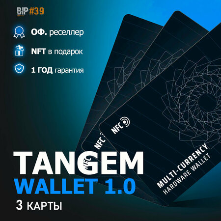 Tangem Wallet — это мультивалютный аппаратный кошелек, который выглядит как обычная пластиковая карта. Он поддерживает более 1000 криптовалют и токенов. В комплекте сразу 3 карты — для безопасности. Первая используется для хранения криптовалют, две другие — для восстановления доступа к средствам из резервной фразы в том случае, если первый криптокошелек будет потерян. Ключи криптоактивов надежно защищены и находятся на карте. Уровень безопасности соответствует стандарту EAL6+. Для шифрования используются протоколы 3 DES, AES, RSA и ECC. Приложение Tangem открывает полный доступ к операциям: меняйте валюты, покупайте NFT в более чем 100 различных децентрализованных сервисах благодаря протоколу Wallet Connect. Также в нашем магазине доступны и другие модели Tangem, такие как Tangem Note, Tangem Pastel, Tangem Stealth, Tangem Vivid 2, Tangem Wallet, Tangem Wallet 2 и наконец долгожданный Tangem Ring всех размеров. Магазин BIP#39 является оф. реселлером и поставщиком всемирно известных брендов - SafePal, Ledger, Tangem, Trezor, OneKey, Ellipal, Yubico, CoolWallet, CryptoTag, BitBox, KeyPal