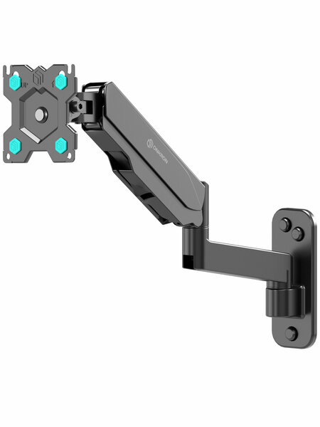 Настенный кронштейн для монитора или телевизора ONKRON G150-B — стильное и надёжное решение для установки экранов диагональю 13–34 дюйма и весом до 8 кг. Держатель для монитора совместим с VESA-стандартами 75x75 и 100x100, что делает его универсальным и подходящим для большинства современных моделей экранов. Кронштейн для телевизора на стену позволяет регулировать угол поворота на 180°, настраивать угол наклона в диапазоне от +90° до -45°, а также переводить экраны в портретный режим благодаря вращению на 360°. Регулировка высоты до 280 мм и вылета от стены от 90 до 508 мм помогает минимизировать нагрузку на зрение, шею и спину, обеспечивая правильное положение экрана. Элегантный дизайн держателя для монитора и система организации проводов поддерживают порядок на столе, освобождают дополнительное пространство и создают аккуратное и стильное рабочее место. Прочный алюминиевый корпус гарантирует долговечность изделия. Кронштейн для телевизора поворотный подходит как для лёгких, так и для тяжёлых мониторов: необходимо лишь отрегулировать пружину под вес монитора после установки. В комплект входит всё необходимое для сборки кронштейна для телевизора: подробная инструкция, а также набор крепежа для экранов большинства популярных производителей (Acer, AOC, Asus, BenQ, Dell, HP, Huawei, Hartens, Hisense, JVC, Lime, Lenovo, LG, Digma, Panasonic, Philips, Razer, Samsung, SANC, Sharp, Sony, TCL, Xiaomi и др.). Крепление для монитора на стену ONKRON G150-B идеально подходит для геймеров, стримеров, дизайнеров и офисных работников. Также кронштейн пригодится дома: для просмотра фильмов или занятий спортом. ONKRON кронштейн для телевизора и монитора — удачное решение для оптимизации пространства и создания профессионального рабочего места. Современный дизайн и качественные материалы делают G150-B не только надёжным, но и эстетичным дополнением интерьера. Выберите крепление для телевизора или монитора G150-B для максимального комфорта, функциональности и эстетики!