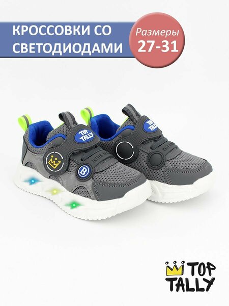 Эти модные текстильные кроссовки для мальчика со встроенными светящимися элементами станет любимой обувью вашего ребенка! Светодиод, расположенный на подошве кроссовок, подсвечивается и мигает при каждом шаге. Благодаря этой яркой детали, вы сможете видеть своего ребенка издалека во время вечерних прогулок. Детские светящиеся кроссовки отлично подойдут на весну и лето, они выполнены из прочного дышащего текстиля, он прекрасно пропускает воздух, создавая приятный микроклимат для ножек. Кроссовки на мальчика оснащены эластичными шнурками и большой удобной липучкой, она обеспечивает легкость одевания и комфорт при носке, т. к. детские кроссовки можно подогнать под любой объем ноги. Облегченная подошва из материала ЭВА делает обувь легкой и гибкой, а текстильная подкладка гарантирует комфорт во время долгих прогулок. Жёсткий задник с мягким пяточным кантом обеспечивает фиксацию голеностопа. Кроссовки для детей со светодиодами нельзя замачивать и стирать в стиральной машинке, рекомендуется бережная ручная чистка. Мигающие кроссовки отлично подойдут для любого случая: подарок на день рождения, в детский сад или для занятий физкультурой, для сына или внука. Обувь с подсветкой любят все дети! Не упустите возможность порадовать вашего ребенка такой стильной и удобной обувью!