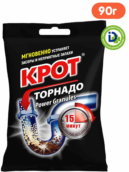 Полностью удаляет даже стойкие засоры в канализационных трубах. Уничтожает микробы и устраняет неприятные запахи. Растворяет жиры, волосы и остатки пищи не повреждая трубы. Подходит для всех видов труб. Гранулы достигая засора действуют эффективно и мощно. Трос очиститель для устранения удаления гранулы порошок торнадо прочистка канализация против засор в унитаз в ванной туалет раковина анти засор щипцы инструмент средства от засоров антизасор товары для уборки для чистки. КРОТ Торнадо гранулированный 90 г это прекрасное средство для прочистки труб и средство от засоров в трубах. Очиститель труб справится с любым засором! Очистка труб произойдет быстро и неизбежно.