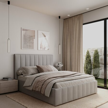 Современное воплощение изысканности и строгости, органично сочетает умеренные нотки французского шика и лаконичного минимализма. Хорошо впишется в сдержанный интерьер. Поможет создать в спальне атмосферу благородного уюта, визуально расширяя пространство за счет стройных вертикальных линий.
