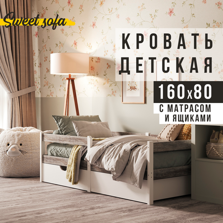 Детская кровать "Sweet Sofa" 160х80 с матрасом и ящиками для белья