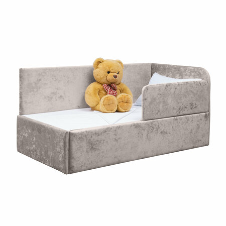 Кровать-диван “Непоседа” со спальным местом 160*80 см - идеальное решение для детской комнаты в современном стиле. Доступна в популярных расцветках: розовый, голубой, серый и бежевый. Изготовлена из микровелюра, прочного и износостойкого материала, способного выдержать более 60 000 циклов использования. Каркас из ЛДСП обеспечивает долговечность и надежность конструкции, а мягкие элементы из пенополиуретана обеспечивают комфорт во время сна. Правое расположение изголовья позволяет использовать пространство комнаты максимально эффективно. Без ящика для хранения, а съемный защитный бортик обеспечивает безопасность ребенка во время сна. Кровать идеально подойдет для маленьких непосед и станет настоящим украшением детской комнаты.