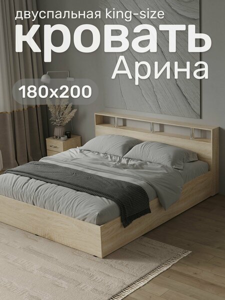 Кровать двуспальная арина станет идеальным выбором для любой спальни, гостиницы или отеля. Кровать поставляется в разобранном виде, что делает ее легкой в транспортировке и удобной при доставке. Инструкция по сборке включена, поэтому вы сможете быстро и легко собрать ее без лишних хлопот. Настил кровати выполнен из прочного и долговечного ДСП. Не упустите шанс обновить свою спальню прямо сейчас с этой красивой и удобной кроватью для двоих!