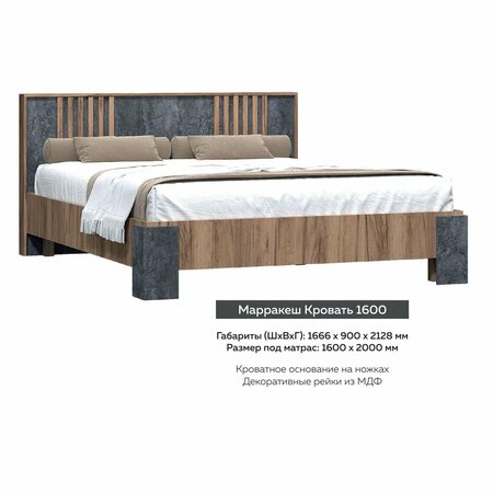 Кровать Марракеш представляет собой стильное и функциональное спальное место размером 1600х2000, оборудованное ортопедическим основанием на ножках. . Разборные ортопедические основания для идеальной поддержки. . Кровать Марракеш оснащена разборными фанерными ортопедическими основаниями на деревянных опорах, которые идеально подстраиваются под контуры вашего тела, обеспечивая правильное положение позвоночника и предотвращая появление болей в спине. Ортопедическая основа позволяет мышцам расслабиться и отдохнуть после напряженного дня, обеспечивая оптимальную поддержку во время сна. . Декоративные рейки из МДФ, которыми украшена кровать Марракеш, добавляют изысканности и стиля в ваш интерьер, делая спальное место не только функциональным, но и привлекательным визуально.