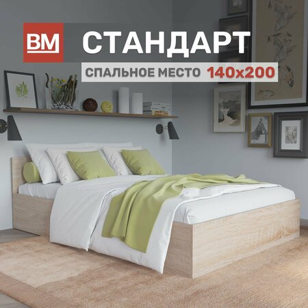 Преобразите свою комнату с помощью этой стильной двухспальной кровати в универсальном цвете сонома! Ее размеры 144х204 делают ее идеальным выбором для любой спальни или детской комнаты. Кровать поставляется в разобранном виде, что делает ее легкой в транспортировке и удобной при доставке. Инструкция по сборке включена, поэтому вы сможете быстро и легко собрать ее без лишних хлопот. Настил кровати выполнен из прочного и долговечного ДСП. Не упустите шанс обновить свою спальню прямо сейчас с этой красивой и удобной двуспальной кроватью Стандарт!