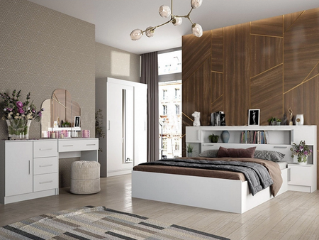 Кровать 1.8 с надстройкой с тумбами Оазис 1835х1116х2229 (ШхВхГ) Габариты кровати 350х1016х370 (ШхВхГ)Габариты тумб Материал: ЛДСП Цвет: Белый Спальное место 1800х2000 мм Основание: Настил Матрас не входит в комплектацию Надстройка имеет откидную дверцу и 4 распашные дверцы. Фабрика оставляет за собой право вносить конструктивные изменения в изделия для улучшения качества продукции не ставя в известность . Поэтому готовые изделия могут иметь незначительные отличия по цвету , по фурнитуре и конструкции от изображенных на фото. Перед сборкой изделия проверьте качество, количество деталей, их размер и целостность в соответствии с инструкцией. В случае обнаружении дефектов обратитесь к продавцу!
