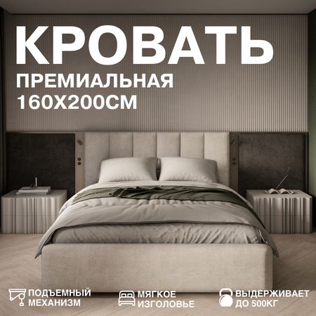 Кровать премиальная 160 х 200 с подъемным механизмом, двуспальная с мягким изголовьем