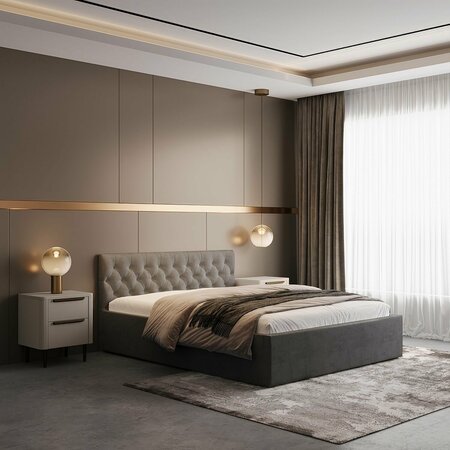 Кровать с матрасом 180х200 двуспальная с ортопедическим основанием, темно-серая