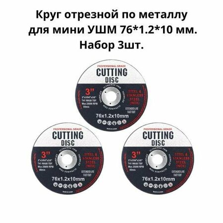 Круг отрезной для УШМ 76мм CUTTING DISC, он же диск пильный, шлифовальный, режущий, по металлу. Подходит для мини болгарки УШМ аккумуляторной. Размеры диска 76 х 1,0 х 10мм Подходит для разных видов применений в ремонте/строительстве (отрезать, зачистить, шлифануть и т д.) ! ! ! Данный продукт является расходным материалом, так что гарантия на него не распространяется ! ! ! Очень важно соблюдать технику безопасности при использовании этого продукта (очки, перчатки)