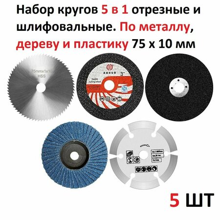 Набор кругов HILDA из 5 штук для аккумуляторной мини болгарки УШМ 75мм. Предназначены под разные виды работ с различным материалом: