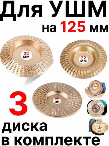Диски обдирочные по дереву для УШМ. Набор из 3 рашпильных дисков для шлифовки и резьбы по дереву. Наружный диаметр дисков 100, миллиметров Внутренний диаметр круга: 22 мм (Если точно: 22,23 мм). Шлифовальный круг кашка для зачистки древесины. Рашпильный зачистной диск для болгарки используется для шлифования древесины. Металлическую обдировную чашку можно использовать как фрезу для художественных объемных фигурных работ по дереву. Рашпильный диск имеет острые зубья из закаленной стали. Рекомендуемые максимальные обороты: до 3 500 об. / мин. Шлифовальная чашка для УШМ, болгарки, угловой шлифовальной машины может быстро затупиться при работе с корой дерева. Обдирочные зачистные зубья шлифовального круга быстро тупятся если попадают на гвозди, саморезы и другие металлические предметы в дереве. Комплектация: 3 диска обдирочных рашпильных по дереву для УШМ (болгарки) на 125мм.