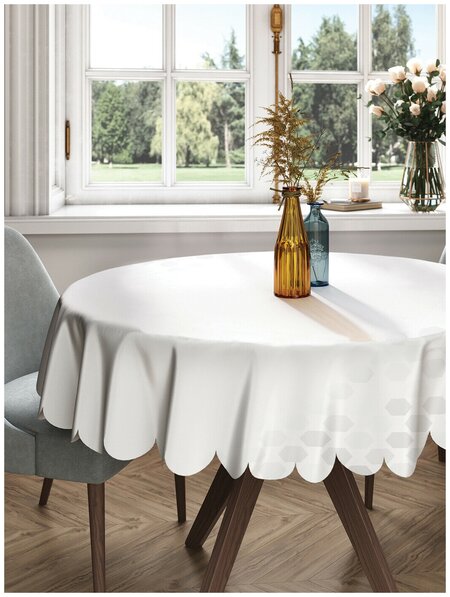 Кухонная скатерть с дизайнерским принтом станет стильным дополнением вашего праздничного стола. Изделие выполнено из износостойкой ткани сатен (100% полиэстер), внешне напоминающей атлас. Гипоаллергенный материал прекрасно переносит множество стирок, не теряя свой цвет. Изделие можно стирать при температуре 30-40 градусов, выбирая деликатный режим. В зависимости от цветопередачи экрана монитора, яркость рисунка может отличаться от изображения на сайте. Допустимо отклонение в размерах в пределах 2-3 см.