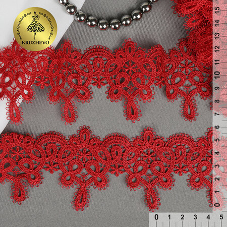 Ажурное, фактурное кружево гипюр от бренда Kruzhevo. Рисунок плотный, детально вывязанный. Отлично держит форму, при этом является достаточно гибким и удобным в работе. Подойдёт для отделки и украшения текстильных изделий, одежды и аксессуаров.