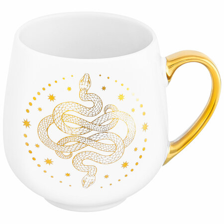 Кружка «Созвездие змеи» предназначена для красивой сервировки стола. Размер ёмкости – 13,5х10,5х10,7 см, объём – 530 мл. Выполнена из фарфора нового поколения new bone china, сочетающего в себе изящность и высокую прочность. За счёт гладкости изделия легко отмываются, поэтому сохраняют привлекательный вид и практичны в использовании. Плотная структура материала позволяет посуде дольше сохранять температуру блюд и напитков. От других видов костяного фарфора new bone china отличается большей экологичностью в производстве. Изделие дополнит любой интерьер и подарит хорошее настроение как взрослым, так и детям! Декоративная чашка поможет провести множество приятных завтраков с капучино и латте, а также уютные чайные вечера. Интересная кружка подходит ценителям чая и кофе, которые любят пить из красивой и необычной посуды. Согрейтесь любимым горячим напитком зимой или освежитесь лимонадом летом. Можно использовать в качестве детской посуды – она отлично подойдёт для сока и молока. Кружечка дополнит ваш стол на любом чаепитии и обязательно впишется в интерьер вашей кухни или столовой. Подойдёт как женщинам, так и мужчинам. Не рекомендуется применять абразивные моющие средства. Не подходит для использования в микроволновой печи и посудомоечной машине. Поставляется в стильной картонной коробке – вам не понадобится дополнительная подарочная упаковка. Чайная или кофейная кружка с изображением змеи – отличный сюрприз и желанный подарок для ценителей красивой дизайнерской посуды. В коллекции Elan Gallery вы найдёте множество сувениров и товаров для дома, которые помогут вам создать комфорт и уют в любом пространстве!
