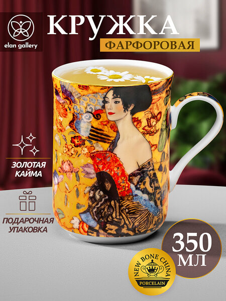 Кружка Elan Gallery "Дама с веером" размером 10,8х7,5х10,5 см и объёмом 350 мл выполнена из фарфора нового поколения new bone china. Благодаря современным технологиям он не уступает традиционному костяному фарфору в прозрачности, белизне и прочности, но при этом гораздо экологичнее в производстве. Яркий и узнаваемый сюжет с картины Густава Климта удачно впишется в любой стиль интерьера, добавляя красоты и романтики. В коллекции бренда Elan Gallery можно найти много красивой посуды и предметов декора с изображениями по мотивам шедевров мировой живописи! Кружечка с золотистым кантом подходит ценителям чая и кофе, которые любят пить из красивой и необычной посуды. Это идеальный вариант для того, чтобы согреться горячим напитком зимой и освежиться прохладным лимонадом летом. Интересная кружечка с удобной ручкой украсит ваш стол своим стильным дизайном как на праздник, так и в будни. Посуда из фарфора идеально впишется в любой интерьер вашей кухни. Не подходит для использования в микроволновой печи и посудомоечной машине. Поставляется в подарочной картонной упаковке. Фарфоровая посуда – хороший вариант подарка любой женщине, в том числе коллеге по работе. Наслаждайтесь любимыми напитками из этой кружечки сами, либо сделайте оригинальный подарок своим близким!