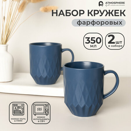 Тепло вашего дома в фарфоровой кружке. Набор фарфоровых кружек Atmosphere of Art "Rhombus" - это стильный и функциональный выбор для вашей кухни. В комплекте вы получаете две кружки объемом 350 мл каждая, что позволяет наслаждаться ароматным чаем или кофе в приятной компании. Также представлены в голубом цвете. Изготовленные из высококачественного фарфора, эти кружки обеспечивают не только эстетическое удовольствие, но и комфорт в использовании. Темно-синий цвет и геометрический рельефный дизайн придают им неповторимый и стильный вид. Полуматовое покрытие делает кружки элегантными и дорогими на вид. Кружки Atmosphere of Art оснащены удобными ручками и подходят для использования в микроволновой печи и мытья в посудомоечной машине. Это делает их удобными и практичными в использовании каждый день. Насладитесь совершенством каждой чашки "Rhombus".