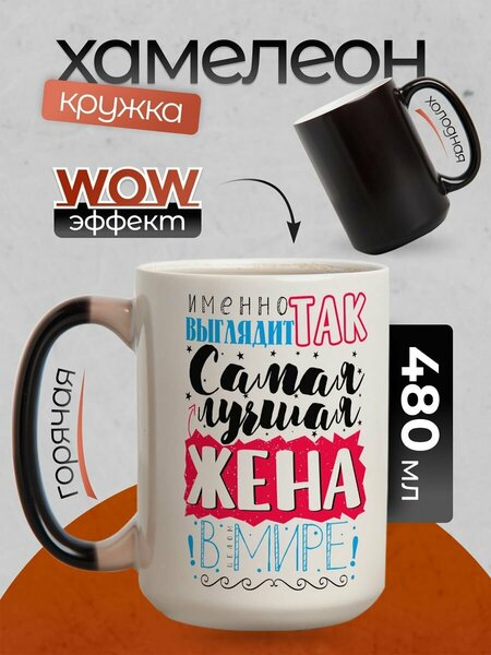 Кружка хамелеон 500 мл с приколом для чая и кофе подарок жене Самая лучшая жена в Мире
