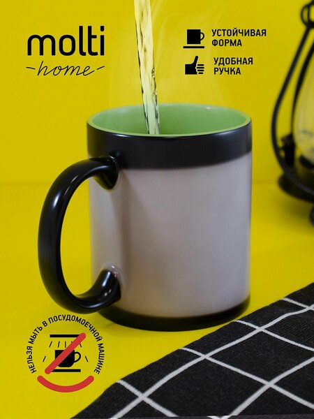 Кружка-хамелеон идеально подходит для любителей чая и кофе. Ее необычное покрытие реагирует на тепло, изменяя цвет при наполнении горячим напитком. Керамическая основа гарантирует прочность и долговечность, а объем 330 мл делает ее удобной для использования дома, в офисе или на отдыхе. Эта чашка станет прекрасным подарком благодаря своему оригинальному дизайну и функциональности. Ее можно использовать как самостоятельный элемент посуды или включить в набор керамики для ежедневного использования. Она подходит как для горячих напитков, так и для холодных. Особенность изделия — возможность нанесения различных видов персонализации. Лазерная гравировка, круговая лазерная гравировка и сублимация позволяют создать уникальный дизайн: от корпоративных логотипов до памятных надписей или рисунков. Благодаря этим технологиям кружка приобретает индивидуальность, что делает ее отличным вариантом сувенира или подарка. Материал изготовления — качественный фаянс, обеспечивающий устойчивость к повреждениям и долговечность при частом использовании. Такой материал сохраняет вкус напитков без посторонних привкусов, что особенно важно для ценителей чая и кофе. Эта универсальная кружка также отлично подойдет для кофемашины благодаря своим стандартным параметрам. Она сочетается с другими керамическими изделиями, такими как чашки, стаканы или парные кружки, что позволяет создать стильный набор посуды из фаянса или керамики. Необычный эффект хамелеона превращает каждое чаепитие в маленькое чудо: изменения цвета завораживают взрослых и детей. Этот яркий акцент добавит тепла зимним вечерам или утренним перерывам за чашкой любимого напитка. Станьте обладателем стильного аксессуара из фаянсовой серии с эмалированным покрытием! Это не просто практичная посуда — это элемент декора вашего стола с ноткой волшебства! Не рекомендуется мыть кружку-хамелеон On Display в посудомоечной машине и использовать в микроволновой печи.