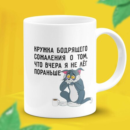 Снова не выспались? Это прикольная кружка для вас! "Кружка бодрящего сожаления о том, что вчера я не лег раньше" и другие кружки для коллег в офисе, студентов во время сессии и всех других, кто высыпается, хочет спать и исправить режим сна. Том из "Том и Джерри" и Багз Банни тоже не выспались и пьют кофе, чтобы не уснуть. Керамическая кружка белого цвета с оригинальным принтом и героями интернета. Объемная и высокая, с удобной ручкой, для горячих и холодных напитков, воды - стильный мемный подарок для подростков или взрослых любителей юмора, который зарядит позитивом и положительными эмоциями и сделает чай или кофе еще вкуснее! Многоразовая крутая кружка для чая с дизайном имеет термоустойчивое покрытие: надписи и картинки нанесены современным оборудованием, можно использовать для микроволновки и мыть посуду из керамики в посудомойке без опасений - стойкий яркий рисунок, на котором красуется кот Том и заяц Багз Банни не стирается со временем. Интересная дизайнерская кружка понравится любому геймеру мальчикам и девочкам, парням и девушкам, а также любимому мужу, мужчине, дедушке, сыну, племяннику, которые обожают иронию. Также женская или мужская кружка с мемами - классный чайный сувенир коллеге для работы и офиса, прикольная кружка подружке на день рождения, подарок брату подростку, маме, бабушке, подруге, другу, сестре для поднятия настроения на любой праздник. В нашем магазине представлено много интересного для детей. Приятные эмоции для ребёнка. Прекрасный сюрприз влюбленным на любой повод. Красивая креативная чашка для чая или под кофе с забавным, необычным декором в стиле сарказма - отличное дополнение к любому фанатскому набору мерч аксессуаров, сувенирных товаров и предметов с героями игр, мультиков, фильмов. Используйте как пивную кружку для приятных посиделок. Большая декоративная подарочная кружка Bugs Bunny с прикольной надписью большого объёма 330 мл.