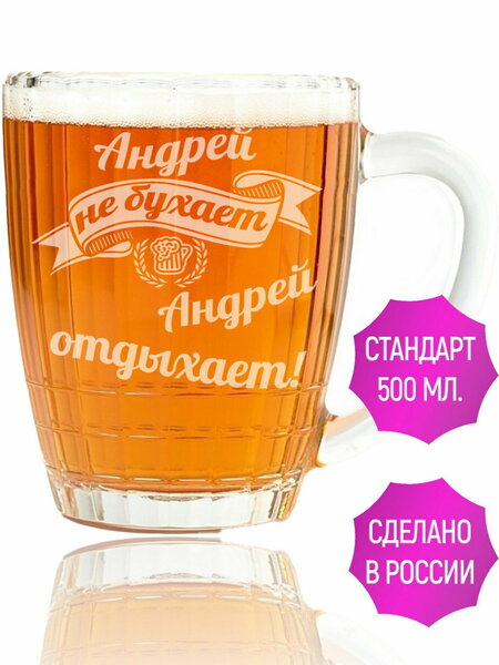 Замечательная пивная кружка Андрей не бухает Андрей отдыхает. Кружка выполнена из прозрачного стекла. Кружка весит приблизительно 400 гр, высота около 13 см. Кружка для пива 8858 не бухает Андрей отдыхает станет замечательным подарком людям с именем Андрей, Андрюха, Андрюша, Андрюшка, Дрон на день рождения, именины, юбилей или просто без повода. Рисунок выполнен с помощью гравировки , что гарантирует долговечность и устойчивость к истиранию. Можно использовать в микроволновой печи и мыть в посудомоечной машине. Кружка упаковывается в пузырчатую пленку и картонную коричневую коробку и надеемся доедет до Вас в лучшем виде. Разработано и изготовлено в России.
