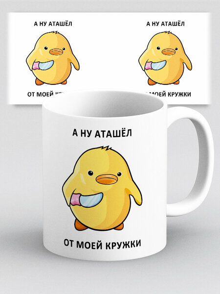 Кружка с приколом мем Утка А ну аташел от моей кружки Милый утенок с ножом
