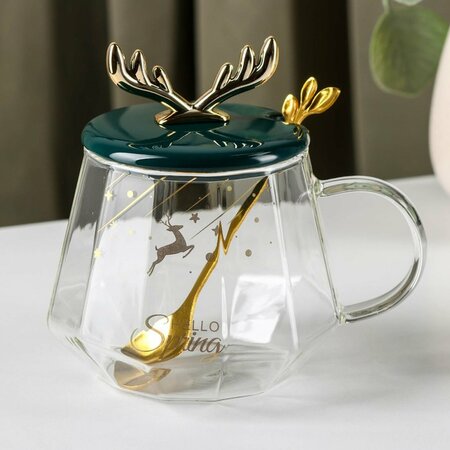 Кружка стеклянная с керамической крышкой и ложкой «Бэмби» объемом 350 мл станет отличным выбором для любителей чая и кофе. Дизайн кружки выполнен в стиле животных и птиц, что делает ее не только функциональной, но и стильной деталью интерьера. Зеленый цвет кружки и рисунок МИКС придают ей оригинальность и уникальность. Кружка изготовлена из высококачественной керамики, что гарантирует ее прочность и долговечность. Металлическая рукоятка обеспечивает удобство и безопасность использования, предотвращая ожоги при контакте с горячими напитками. В комплекте с кружкой идут керамическая крышка и ложка, что делает ее еще более функциональной и удобной в использовании. Крышка предотвращает попадание пыли и насекомых в напиток, а ложка позволяет легко размешать сахар или сливки. Кружка стеклянная с керамической крышкой и ложкой «Бэмби» станет отличным подарком для любителей чая и кофе, а также для тех, кто ценит комфорт и стиль в повседневной жизни.