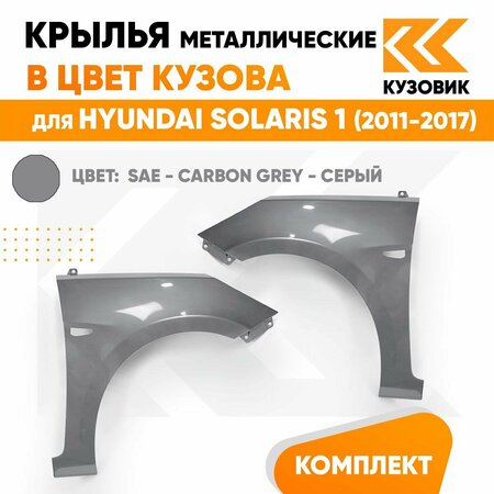 Крылья передние комплект в цвет Хендай Солярис 1 Hyundai Solaris 1 (2011-2017), металлические с отверстием под повторитель, SAE - CARBON GREY - Серый 2 штуки левое + правое. Новые крылья, окрашены в цвет вашего автомобиля с гарантией. Окраска производится в заводских условиях. Крылья проходят процедуру шлифовки, грунтования и нанесения краски и лака в два слоя. Цвет крыла соответствует заводскому коду краски по классификации автомобильной марки Хендай: SAE - CARBON GREY - Серый. Крыло в цвет кузова - выгодное решение для кузовного ремонта вашего автомобиля. Вам понадобится всего 2 часа на замену детали и ваша машина снова будет как новая! Крылья передние с артикулом KP03SLRS1KZVKSAE торговой марки "кузовик" по техническим характеристикам предназначено для установки на автомобиль марки Хендай модели Солярис. Крепежные элементы и отверстия на детали совпадают с кузовными параметрами автомобиля Hyundai Solaris, совместимость проверена в сервисном центре компании "Кузовик".