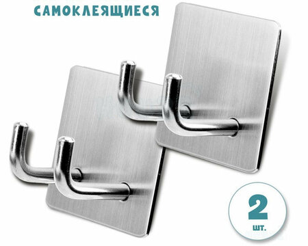 Крючки самоклеящиеся из нержавеющей стали для ванной и кухни - 2 шт.