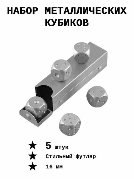 Игры для взрослых и детей станут еще более увлекательными с этим набором металлических зариков на пять штук. Игровые кости изящно скользят по поверхности игрального поля, как летающие звезды в новогоднюю ночь. Металлические зары, словно храбрые рыцари, готовые сразиться в настольных битвах за победу. Металлические зары для покера добавят остроты и доли азарта вашим настольным играм. Уникальный набор кубиков создан для тех, кто ценит качество и элегантность в каждом движении. Раскатывайте свои броски, словно пиратский корабль поднимает паруса перед новым приключением. Каждый кубик - это возможность изменить ход игры в свою пользу, словно волшебный инструмент нард или тайный ключ от дверей успеха. Сияющие металлические кости превратят ваш стол в арену сражений за трон, где каждый бросок может определить судьбу всей игры. Ваше времяпровождение станет увлекательным путешествием сквозь времена и пространства, где вы - главный герой. Позвольте самим себе окунуться в мир напряженных игровых ситуаций и неожиданных поворотов, благодаря этому уникальному набору металлических зариков. Настоящие ценители азартных игр оценят каждый бросок как настоящий шедевр стратегии и удачи. Сделайте ваш выбор в пользу кубиков из этого набора и украсьте ваше времяпровождение яркими эмоциями и захватывающими приключениями. Создайте атмосферу настоящего состязания без правил и ограничений - только вы и ваша неистовая жажда победы!