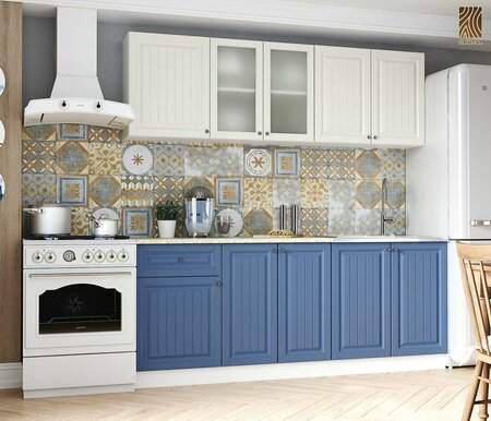 Кухонный гарнитур Хозяюшка 240 см состоит из нескольких элементов, в которых удобно поместятся посуда, разная утварь, сыпучие продукты и специи. Фасады украшены глубокой фрезеровкой и миниатюрными ручками. Такой дизайн отлично сочетается с разными интерьерными стилями: от классики до прованса.