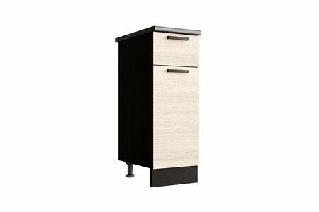 Кухня модульная “Мальва” - стильное и функциональное решение для вашего интерьера! Кухонные модули из серии "Мальва" выполнены в гармоничном сочетании цветов и из прочного ЛДСП. Шкаф напольный для кухни имеет ширину 30 см и высоту 83.2 см. Глубина его составляет 42.1 см, это обеспечивает достаточное пространство для хранения посуды. Ручка выполнена из пластика. Кухонный шкаф содержит 1 ящика с роликовыми направляющими. За створкой содержится 1 полка. Столешница в комплекте, цвет - мрамор черный, глубина - 60 см. Ножки регулируемые. Создайте уютную и функциональную кухню с модульной серией “Мальва”!