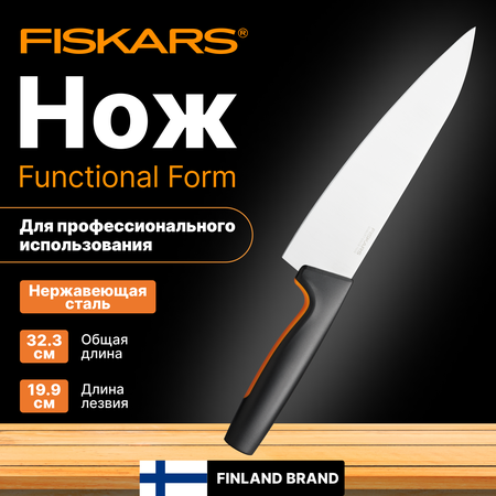 Достоинства:Фискарс как всегда на высоте.Качество действительно финское. Пользуюсь уже около 4 месяцев.Работаю поваром. Только правил его несколько раз.(понимающие поймут!) Недостатки:Возможно,кому то покажется слишком легким.Для тех,кто раньше работал с двухсотграммовыми ножами. Комментарий:Нож пришёл вовремя,в заводской упаковке .Рекомендую к покупке однозначно!
