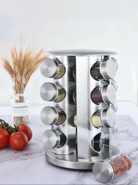 вращающаяся подставка, герметичные баночки, отверстия для специй