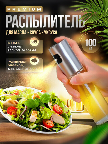 Каждый, кто часто готовит еду, знает насколько важно качественное хранение на кухне, и чтобы посуда и кухонные принадлежности были удобными в использовании. От этого зависит не только настроение повара, но и вкус готового блюда. Наш Premium распылитель для растительного масла c мелкой дисперсией позволит точно дозировать расход и быстро тонким слоем смазать посуду. Что уменьшит время на приготовление пищи. Емкость для масла с распылителем представляет собой небольшую бутылочку объемом 100 мл, состоящую из 2 элементов: прозрачного нижнего и металлического верхнего. Прозрачный флакон с распылителем выполнен из закаленного боросиликатного стекла, верхняя часть - из пищевой стали. В металлическую деталь встроен надежный механизм из abs пластика. Качественные материалы, из которых сделаны распылители, гарантируют удобство в использовании и долгий срок службы. Огромное преимущество распылителя масла в том, что спрей не бъёт струей, а распыляет облачком при резком нажатии на кнопку. Таким образом посуда или продукты равномерно сбрызгиваются небольшим количеством соуса. При необходимости медленное нажатие на кнопку пшыкалки дает узкую четкую струю. В бутылочку распылитель для масла можно наливать любые соусы. Используя емкость для масла с распылителем, вы сможете снизить калорийность пищи, лишь слегка сбрызгивая готовую еду или дно антипригарной посуды. Распыляя соус на салат с помощью бутылочки распылителя вы легко и быстро нанесете его на все блюдо ровно в таком количестве, в котором требуется. По мере опустошения содержимого пополнять сосуд можно через воронку, которая входит в комплект. Купите кухонный распылитель для масла, и вы навсегда избавитесь от перелива в блюда, жирных подтеков на бутылках, а также от потребности применять кисточку для смазывания. Благодаря качественному механизму в процессе эксплуатации пульверизатора жидкость распыляется точно в цель, и руки останутся чистыми во время готовки. Распылитель для оливкового масла можно применять для приготовления блюд на мангале или гриле, при необходимости сбрызгивая мясо соусом или маслом. Его можно наполнить водой и брызгать на пламя во время жарки мяса на костре.