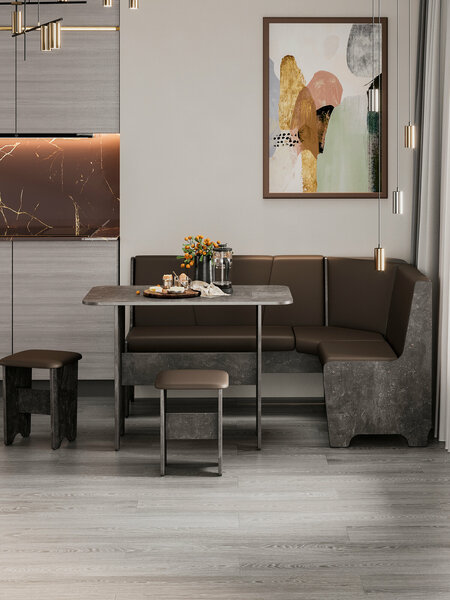 Кухонный уголок Техас - идеальное решение для людей, которые часто любят принимать гостей, но стремятся сохранить больше свободного пространства на кухне или в обеденной зоне. Он включает себя угловую скамью, два табурета и стол. Сборка скамьи в этом наборе возможна как на левую, так и на правую сторону. Классический минималистичный дизайн, сбалансированная конструкция, доступная цена и разнообразие расцветок набора позволяют приобрести подходящую модель для помещения, оформленного в любом стиле. Исполнение данного набора заключается в простых формах, является устойчивым и компактным, эффективно экономят пространство. Скамья оснащена дополнительными ящиками для хранения. Набор вносит порядок, гармонию и практичность, являясь идеальным вариантом для малогабаритных комнат.