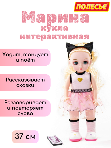Знакомьтесь с новинкой от фабрики "Полесье" – коллекцией интерактивных кукол на пульте управления "Моя подружка"! Кукла "Арина" (37 см) на вечеринке (в коробке) умеет: говорить и петь на русском языке, повторять слова, рассказывать сказки, ходить, танцевать и слушать музыку. Кроме того, туфельки "подружки" имеют подсветку. Кукла знает 7 сказок: «Колобок» «Репка» «Курочка Ряба» «Лисичка-сестричка» «Теремок» «Коза-дереза» «Лиса и журавль» Кукла исполняет 7 песен: Весёлая задорная Жили у бабуси Считалочка Мишка Давай петь Каравай Колыбельная В наборе с куклой идёт анкета подружки, которая разнообразит игру и сделает её ещё интереснее! Игрушка работает от 3 батареек типа АА R-6 (не входят в комплект), а пульт – от одной батарейки CR 2025 (входит в комплект). Для включения куклы необходимо: переместить рычаг на спинке в режим "ON" и нажать кнопку на передней части туловища куклы. Ребёнок сможет доверить ей свои самые большие секреты и познать удивительный мир дружбы!