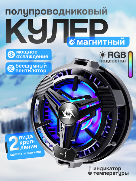Кулер для телефона: мощный вентилятор и RGB подсветка Кулер для телефона оснащен мощным вентилятором конвекционного типа, который обеспечивает быстрое рассеивание тепла и охлаждение процессора вашего смартфона. Благодаря компактному и портативному дизайну, кулер легко устанавливается на заднюю часть корпуса мобильного телефона и не отвлекает от игры или работы. RGB подсветка: стильный дизайн и функциональность Яркий и стильный RGB-светильник дополняет функционал устройства и делает его использование еще более удобным и приятным. Вы можете выбрать любой цвет подсветки в соответствии с вашим настроением или предпочтениями. Датчик температуры и контроль воздушного потока Встроенный датчик температуры позволяет контролировать температуру устройства и предотвращать его перегрев. Сильный воздушный поток обеспечивает полный контроль над температурой и ее понижением, продлевая срок службы аккумулятора и защищая устройство от перегрева. Компактный и удобный в использовании Кулер имеет размеры 50 мм в ширину и 65 мм в высоту, что делает его удобным для переноски и использования в любых условиях. В комплекте с кулером идут все необходимые комплектующие для крепления и установки. В заключение, кулер для телефона с мощным вентилятором и RGB подсветкой станет отличным выбором для тех, кто ценит комфорт и безопасность использования своего смартфона.
