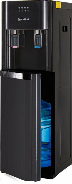 Достоинства:Бутыль удобно ставить в шкафчик а не поднимать как в кулерах с верхней загрузкой