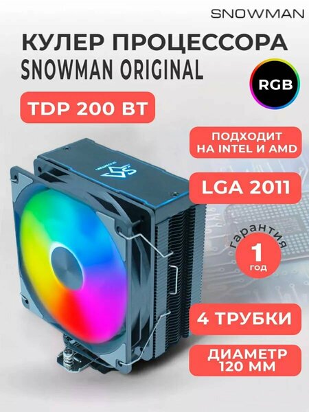 Кулер для охлаждения процессора Snowman M-T4 V3 RGB – устройство со сбалансированными характеристиками. Оно подойдет для различных систем, возможно поставить на платы с различными видами сокетов. Для этого вместе с кулером в коробку прикладываются крепления под них. Крепление кулера на защелках. Имеет RGB подсветку При установке термопаста наносится на поверхность процессора для обеспечения наилучшего контакта и отвода образующегося тепла. Основание и радиатор имеют высокую теплопроводность, производство осуществляется из меди и алюминия. Вентилятор работает практически бесшумно. Уровень шума не превышает 30 дБ при разгоне до максимальной скорости.