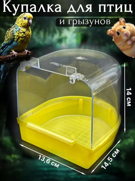 Размеры 14.5x13,6x14 см. Состоит из 2-х частей, верхняя часть - прозрачный пластик с креплениями, нижняя часть - дно тоже с креплениями. Чтобы не проливать воду, надо наполнять только цветное донышко. Наша ванна выполнена из высококачественного пластика, который безопасен для здоровья вашего питомца. Она прочная и долговечная, поэтому вы можете быть уверены, что она прослужит вам долгие годы. Купалка имеет удобную форму и размеры, которые идеально подходят для птиц, попугаев и хомяков разных пород и размеров. Универсальное крепление подойдет для большинства типов клеток, для круглых клеток не подходит. Купалка предназначена для канареек, волнистых попугаев, попугаев -неразлучников, какариков, лори, мелких и средних экзотических птиц. Для крупных птиц - корелла, какаду, ара, амазонов используется как поилка и игрушка. Можно устроить копошилку, насыпать на дно ванны кору, ветки, колосья, либо купить готовый состав копошильни. Вашим домашним птичкам периодически нужно принимать ванны. Благодаря данному процессу поддерживается чистота перьев и баланс влажности кожи. Для этого создана купалка, которую легко закрепить на внешней стороне клетки - напротив дверки. В качестве подарка вашему питомцу, вы можете подарить нашу ванночку на 1 сентября, день рождение, новый год, 23 февраля, 8 марта, масленицу, пасху, день защиты детей, 1 и 9 мая. Для маленьких питомцев, таких как хомяков, крыс, мышей, песчанок, дегу, морских свинок, бурундуков, белок и других грызунов, купалка является важным атрибутом, который помогает им сохранять гигиену и поддерживать их здоровье. Важно помнить, что купалка должна быть чистой и свежей, чтобы избежать развития бактерий и инфекций. Она также должна регулярно меняться, чтобы обеспечить правильную гигиену питомца. Ванна или купальня должна быть достаточно большая, чтобы животное могло свободно купаться. Важно также обеспечить антискользящую поверхность дна, чтобы животное чувствовало себя уверенно и не скользило.