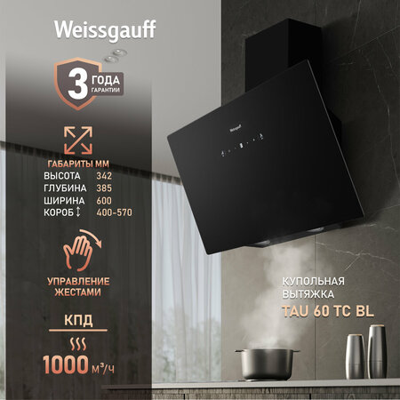 Новая модель вытяжки от компании Weissgauff, выполненная в наклонном стекле обладает современным и чувствительным сенсорным управлением, а также способна эффективно работать на любой из 3 скоростей по Вашему выбору, включая максимальный режим с производительностью 1000 м3/ч! Производительность 1000 м3/ч это поистине фантастический показатель, который позволит эффективно и бескомпромиссно справиться с задачей по очистке воздуха на вашей кухне! Эффективная работа в помещении площадью до 30 м2 - это гарантия того, что после установки вытяжки Weissgauff, обновление воздуха будет соответствовать всем требуемым нормам, сохраняя ваше здоровье на долгие годы! Низкий уровень шума 49 дБ сделает работу с данной вытяжкой по-настоящему комфортной и приятной, ведь мы в Weissgauff знаем, как добиться высокой производительности без лишнего шума! Периметральное всасывание - это технология, которая позволяет вытяжке достигать более высокой производительности, существенно снижая при этом шум. Дизайн панели, выполненный в черном закаленном стекле станет финальным штрихом в совершенстве великолепного облика этой модели. Каждый раз, заходя на кухню, вы будете чувствовать, что эта вытяжка - не просто функциональное устройство, но и настоящее украшение вашей кухни! Сенсорный блок управления это настоящая гордость Weissgauff, ведь он не только является интуитивно понятным, но и великолепно реагирует на прикосновения с первого нажатия даже в том случае, если ваши руки влажные или прохладные 3 скорости работы двигателя дают вам возможность выбрать наиболее подходящий уровень интенсивности в зависимости от ситуации Работа в режимах отвода и циркуляции откроет вам широкие возможности по установке этой вытяжки в проект вашей кухни. Организуйте полноценный вывод воздуха из помещения или установите угольный фильтр и используйте вытяжку вместе с ним - какой бы вариант вы ни выбрали, модель от Weissgauff сделает это возможным! Алюминиевый жировой фильтр особой трёхслойной конструкции, с асинхронным расположением решёток, эффективно защитит двигатель от жира и испарений, продлив срок службы устройства. Интегрированное LED-освещение дает возможность создать более комфортные условия на кухне и использовать эту вытяжку как дополнительный источник кристально чистого и яркого света. Возможность установки угольного фильтра станет отличным решением для вытяжки, работающей в режиме рециркуляции, позволяющим повысить эффективность очистки воздуха и избавиться от нежелательных запахов!