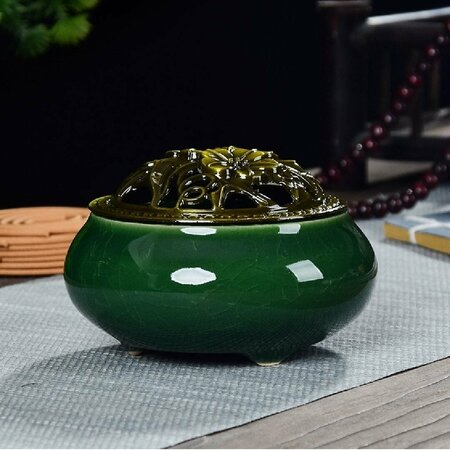 Керамическая курильница прямиком из Китая, выполненная в традиционной манере. Подойдет под любой интерьер, прекрасно впишется в спальне, гостиной на полке или подоконнике. Может быть использована во время чайной церемонии. Подходят любые благовония. Конусные-пули безосновные спирали Пало Санто сыпучие. Такие курильницы используют для церемоний Сян Дао - церемония возжигания сандала для очищения тела и разума. Подойдет для медитаций. Курильница - отличный вариант подарка на праздники 8 марта день рождения новый год Инструкция Внутри лежит коврик - противоогневая защита, на него вы кладете заженые благовония (если это не сыпучий комплект, где немного отличается технология, там коврик не нужен) и закрываете крышку, сквозь отверстия плавно будет выплывать дым и распространяться аромат по комнате. После прогорения, благовония можно просто стряхнуть с коврика.