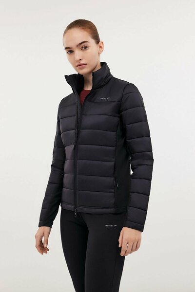 Женская укороченная утепленная куртка-пуховик полуприлегающего силуэта для занятий спортом и бега. Изготовлена из комбинации мягкой нейлоновой ткани с влагоотталкивающей пропиткой и вставками из плотного эластичного трикотажа. Такое полотно обеспечивает надежную защиту от холода и влаги. Используемый синтетический утеплитель не подвержен воздействию влаги, исходящей от тела, а детали из нейлоновой ткани простеганы с мягким синтепоном. Внутренние части рукавов и боковые части куртки выполнены из трикотажа, что обеспечивает комфорт и свободу движений. Эластичные «дышащие» вставки на боках и на внутренней стороне рукавов помогают сохранить микроклимат тела и свободу движений. Полуприлегающий силуэт создается рельефными швами на полочке и на спинке, подчеркивая фигуру и элегантность образа. Капюшон убирается в воротник-стойку и его можно легко и быстро достать при необходимости. Модель продумана до мелочей: центральная застежка на молнию с внутренней ветрозащитной планкой, глубокие карманы на молниях в рельефных швах, светоотражающие элементы спереди и сзади. По низу трикотажной части рукава сделаны функциональные отверстия для большого пальца руки, что обеспечивает дополнительное прилегание и теплозащиту. В сильные морозы рекомендуем использовать с утепляющим слоем — лонгсливом B2124512.