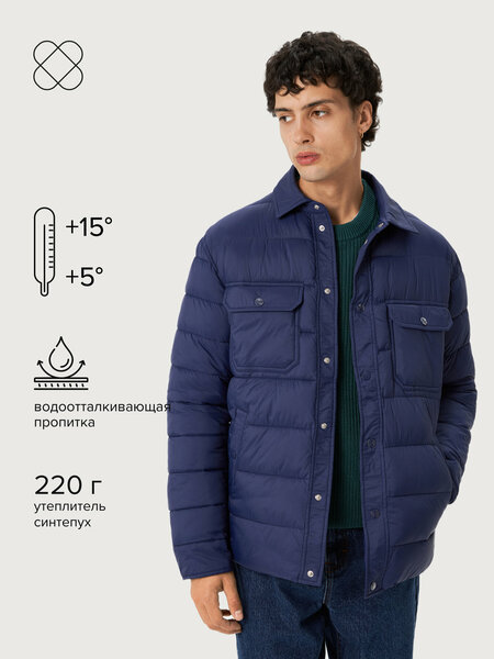 Укороченная стеганая мужская куртка из outerwear-коллекции с водоотталкивающим покрытием — идеальный выбор для межсезонья. Утепленная полиэстеровым наполнителем (вес 170гр/м2), она предлагает оптимальный уровень теплоизоляции и защиту от влаги. Рекомендуемый температурный режим для этой модели — от +5 до -5 градусов, что делает её подходящей для разнообразных погодных условий. Подкладка из гладкой подкладочной ткани обеспечивает дополнительный комфорт и легкость в носке. Куртка застегивается на металлические кнопки, что придает ей стильный и современный вид. Спереди куртка дополнена двумя накладными карманами с клапанами на кнопках и двумя прорезными карманами с листочками и кнопками, что делает её функциональной и удобной для хранения мелочей. Отложной рубашечный воротник добавляет элегантности и позволяет легко стилизовать куртку в повседневных образах. Модель представлена в трех классических цветах: черном, хаки и темно-голубом, что позволяет выбрать идеальный вариант для вашего гардероба.
